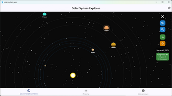 ΠΡΠΎ ΠΏΡΠΈΠ»ΠΎΠΆΠ΅Π½ΠΈΠ΅ Π΄Π»Ρ Π²ΠΈΠ·ΡΠ°Π»ΠΈΠ·Π°ΡΠΈΠΈ ΡΠΎΠ»Π½Π΅ΡΠ½ΠΎΠΉ ΡΠΈΡΡΠ΅ΠΌΡ Π½Π° Flutter. ΠΠ½ΠΎ ΠΏΠΎΠΊΠ°Π·ΡΠ²Π°Π΅Ρ ΠΏΠ»Π°Π½Π΅ΡΡ, ΠΈΡ ΠΎΡΠ±ΠΈΡΡ, Ρ Π°ΡΠ°ΠΊΡΠ΅ΡΠΈΡΡΠΈΠΊΠΈ ΠΈ ΠΏΠΎΠ·Π²ΠΎΠ»ΡΠ΅Ρ ΠΈΠ·ΡΡΠ°ΡΡ ΠΊΠΎΡΠΌΠΎΡ Π² ΠΈΠ½ΡΠ΅ΡΠ°ΠΊΡΠΈΠ²Π½ΠΎΠΌ ΡΠΎΡΠΌΠ°ΡΠ΅.